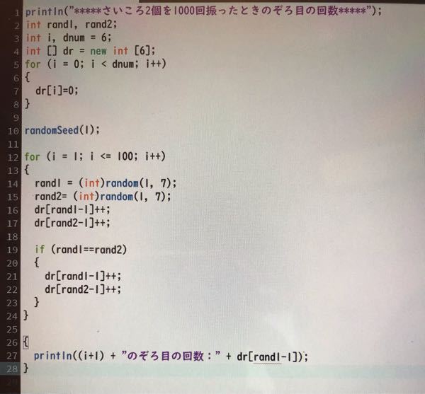 二つのサイコロを1000回振った時書くゾロ目が出た回数を出力するプログ Yahoo 知恵袋